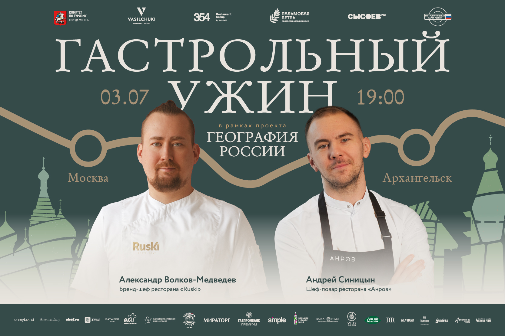 Ресторан RUSKI (354 Restaurant Group by Vasilchuki) при поддержке Комитета по туризму города Москвы и Гастрономической карты России продолжает федеральный проект «География России». В этом году команда запустила четвертый сезон и вновь путешествует по важнейшим городам России с особыми ценностями, чтобы показать насколько богата и разнообразна российская гастрономическая культура.